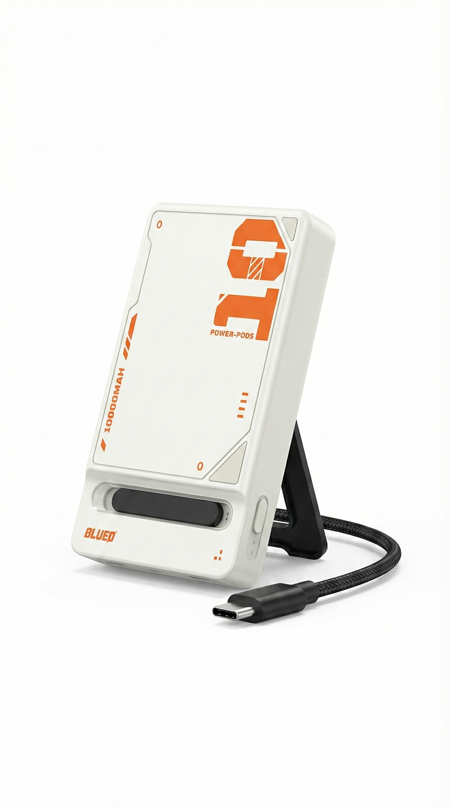 Powered by a 10000mAh high-density polymer battery, the BLUEO MF Stand Power Bank ensures long-lasting performance while maintaining a compact, ultra-slim profile that fits perfectly in your pocket, bag, or even your hand. The magnetic module attaches securely to all MagSafe-supported devices, ensuring perfect alignment for smooth wireless charging without slipping or disconnecting.