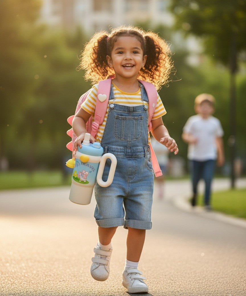 Crafted from safe and durable BPA-free material, the bottle ensures purity in every sip. Its leakproof cap prevents spills, keeping your bag and belongings clean. A perfect blend of usefulness and gentle design — a fine companion for both children and the young at heart.