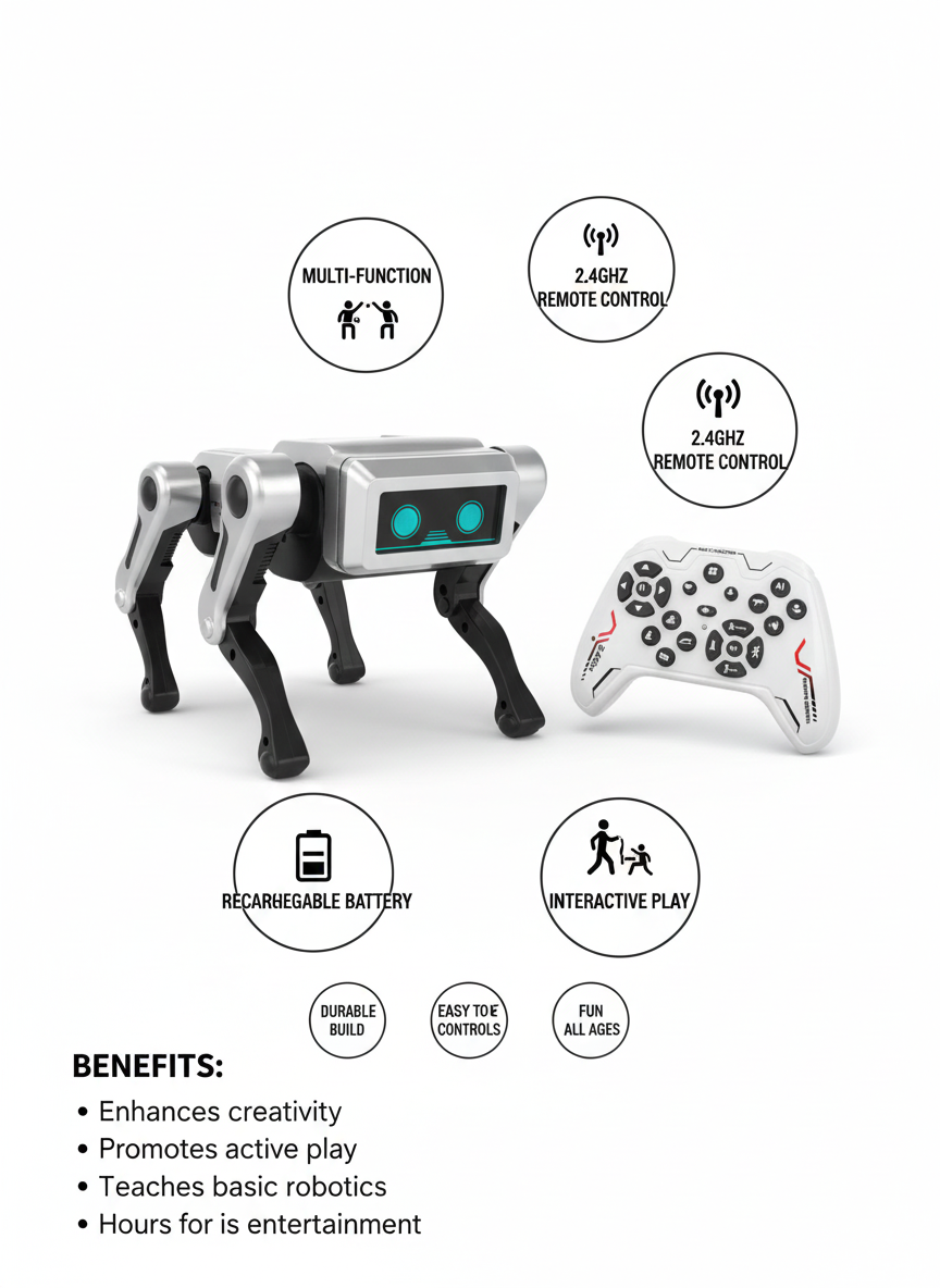 The Mini Saviour RobotX Smart RC Robot Toy brings advanced robotic fun into a compact, kid-friendly design that inspires creativity, imagination, and hands-on learning through lifelike movement and responsive controls. Engineered with a sturdy, futuristic body, this mini robot walks, moves, and performs exciting stunt actions that keep children entertained for hours. Its LED eyes light up during motion, adding personality and enhancing the interactive experience, while built-in sound effects create a lively atmosphere that captures kids’ attention instantly. The 2.4GHz remote control ensures smooth and stable operation without interference, allowing children to guide the robot forward, backward, left, or right with ease. This robot toy encourages kids to explore balance, direction, and coordination while boosting motor skills and problem-solving abilities during play. The durable design withstands everyday use, making it suitable for both indoor adventures and fun play sessions at home, school, or with friends. Its compact size makes it easy to carry, store, and handle, giving younger children confidence and independence while playing. With simple controls and engaging features, the Mini Saviour RobotX becomes a perfect companion for imaginative storytelling, pretend play, and early STEM inspiration. Kids can create their own robot missions, obstacle challenges, or stunt performances, adding unlimited replay value to this smart robot companion. Ideal for ages 3 and above, this toy is a thoughtful gift for birthdays, festive occasions, or learning-based playtime. Designed with child-safe materials and smooth edges, it ensures worry-free play for parents and endless excitement for kids. Whether you're looking to spark curiosity in robotics, encourage active learning, or simply provide a fun and interactive toy, the Mini Saviour RobotX delivers a perfect blend of technology, movement, and entertainment in one compact, futuristic package designed to bring joy and creativity to young minds.