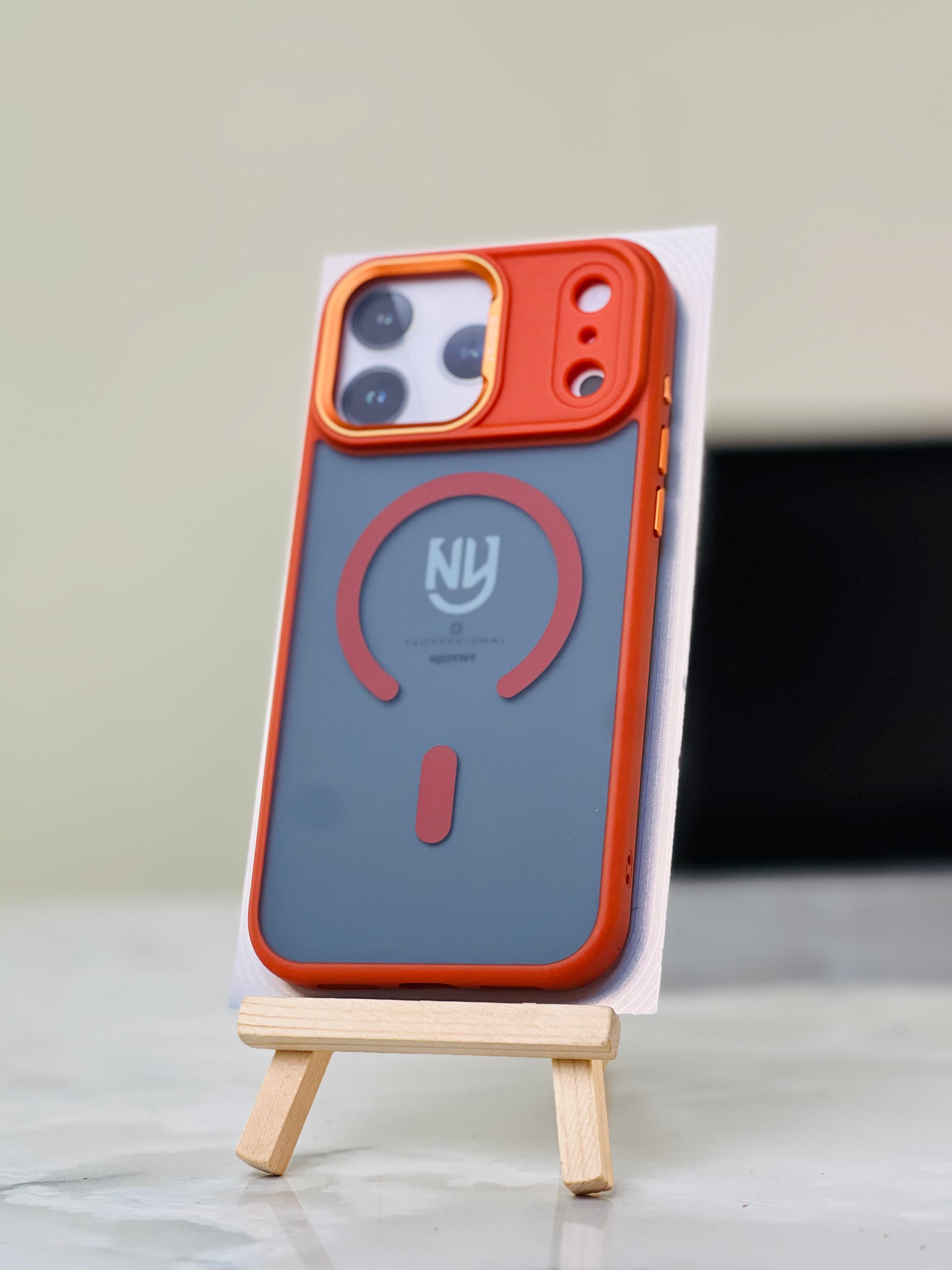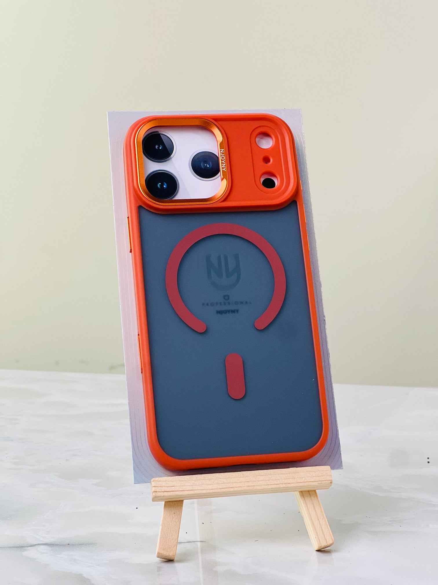 Protect your iPhone 17 Pro Max in style with this premium rugged case. Designed with a durable orange frame and contrasting gray back, this case offers excellent shock absorption and scratch resistance. The raised camera guard ensures your triple-lens system stays safe from scratches and impacts, while the built-in magnetic ring supports effortless wireless charging and magnetic accessories. Precision cutouts provide easy access to all ports and buttons without removing the case. Combining function and fashion, this case is the perfect companion for your iPhone 17 Pro Max.