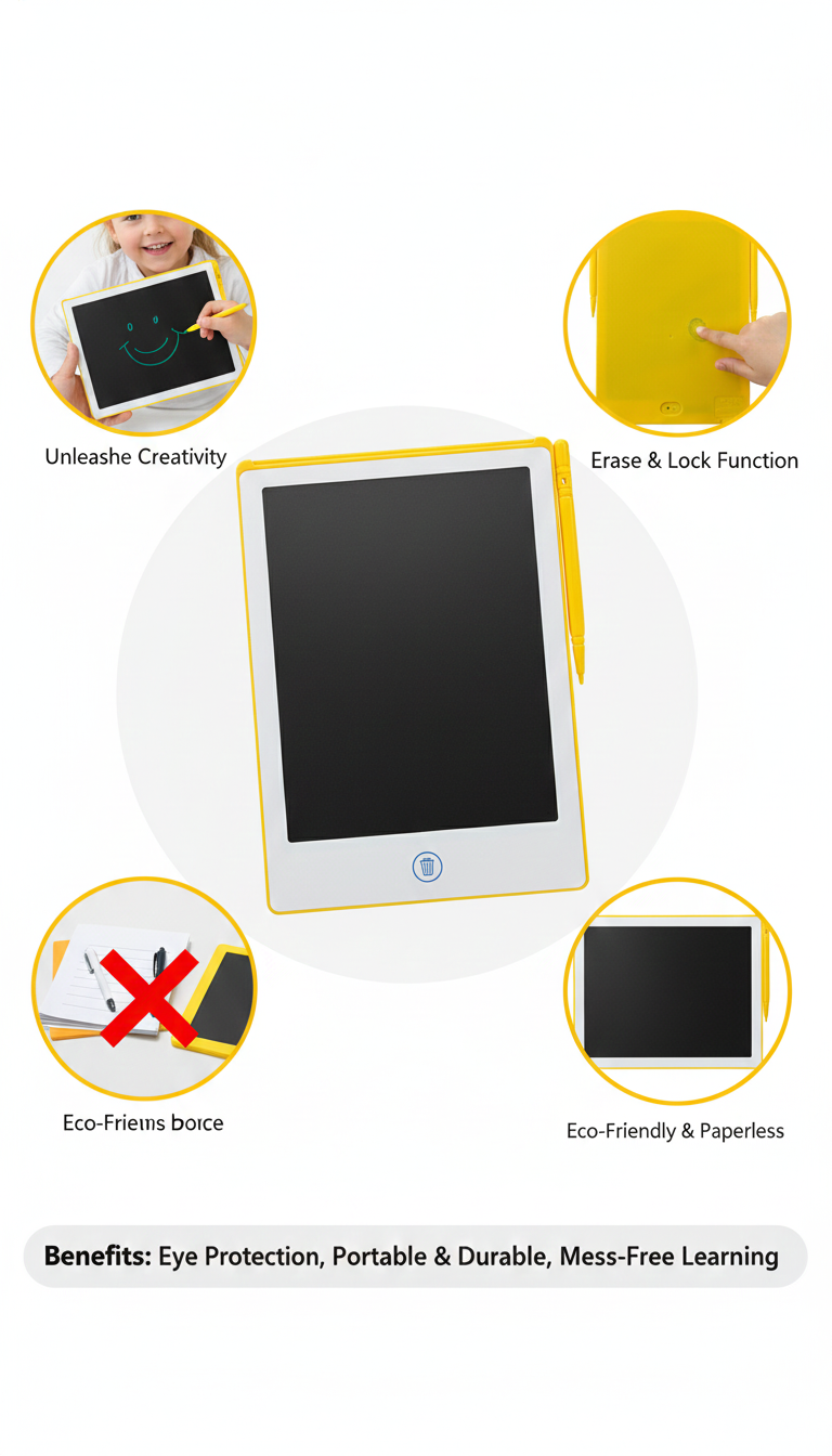 Writing Pad, Eco-Friendly Drawing Board, Educational Learning Toy, Travel-Friendly Gift for Boys and Girls
