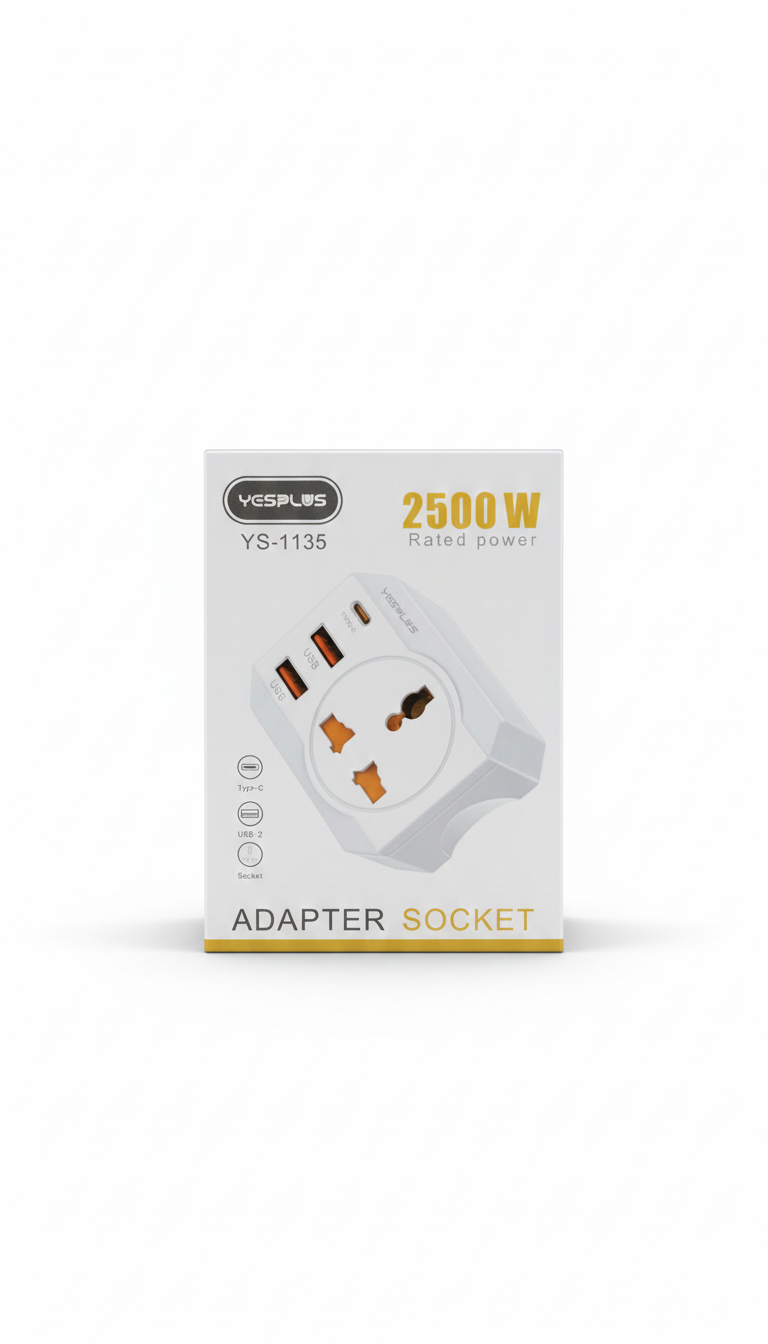 The YESPLUS YS-1135 Universal Travel Power Adapter is a refined and dependable power solution designed for modern travellers, professionals, and households seeking safe, efficient, and globally compatible charging performance. Engineered with a robust 2500W rated power capacity, this compact adapter supports a wide range of everyday electronics including smartphones, tablets, laptops, cameras, grooming devices, and personal accessories, ensuring uninterrupted usability across international destinations. Featuring universal socket compatibility, it accepts plugs from multiple regions while delivering stable output through intelligently designed internal components that prioritise reliability and user safety. The integrated safety shutter system provides essential protection by preventing accidental contact with live parts, making it suitable for families, hotel environments, and shared spaces where safety awareness is paramount. Equipped with advanced USB charging options, the adapter includes a 15W PD Type-C fast charging port alongside additional USB outputs, enabling simultaneous multi-device charging without compromising speed or efficiency. This thoughtful configuration reduces the need for multiple chargers, declutters travel bags, and ensures essential devices remain powered throughout busy schedules. Crafted with a premium, durable exterior, the YESPLUS YS-1135 maintains a clean, modern aesthetic while withstanding frequent handling and transportation, making it a reliable companion for long journeys and daily use alike. Its compact and lightweight construction allows it to fit easily into luggage, backpacks, or briefcases, offering exceptional portability without sacrificing performance. Designed for universal voltage environments, the adapter accommodates international power standards, making it an ideal choice for business travellers, tourists, digital nomads, and students navigating different regions. The precision-engineered internal circuitry promotes consistent power delivery, helping to protect connected devices from voltage irregularities while maintaining optimal charging conditions. The inclusion of multiple device charging capability enhances convenience by allowing phones, power banks, wireless accessories, and other USB-powered electronics to be charged simultaneously from a single wall outlet. With a focus on user confidence, the product is supported by a 12-month guarantee, reflecting the manufacturer’s commitment to quality, reliability, and customer satisfaction. The universal socket design ensures broad compatibility with commonly used plug types, eliminating the inconvenience of carrying multiple regional adapters and simplifying travel preparation. The YESPLUS YS-1135 is intended exclusively for charging and powering compatible electronic devices and is not designed for high-power heating appliances, ensuring safe and appropriate use in accordance with international travel standards. Its thoughtfully contoured shape allows easy insertion and removal from wall sockets while maintaining a secure connection during operation. By combining high power capacity, fast charging technology, and comprehensive safety features, this adapter delivers a balanced blend of performance and peace of mind. Whether used in hotels, airports, offices, or homes, it offers dependable functionality for modern lifestyles that rely heavily on electronic connectivity. The premium internal components are selected to promote longevity, reduce wear, and ensure consistent operation across extended periods of use. With its emphasis on universal compatibility, efficient power management, and travel-ready design, the YESPLUS YS-1135 stands as an essential accessory for anyone seeking a single, trustworthy power solution for international and domestic environments alike, delivering convenience, safety, and performance in a compact form that aligns seamlessly with contemporary expectations.